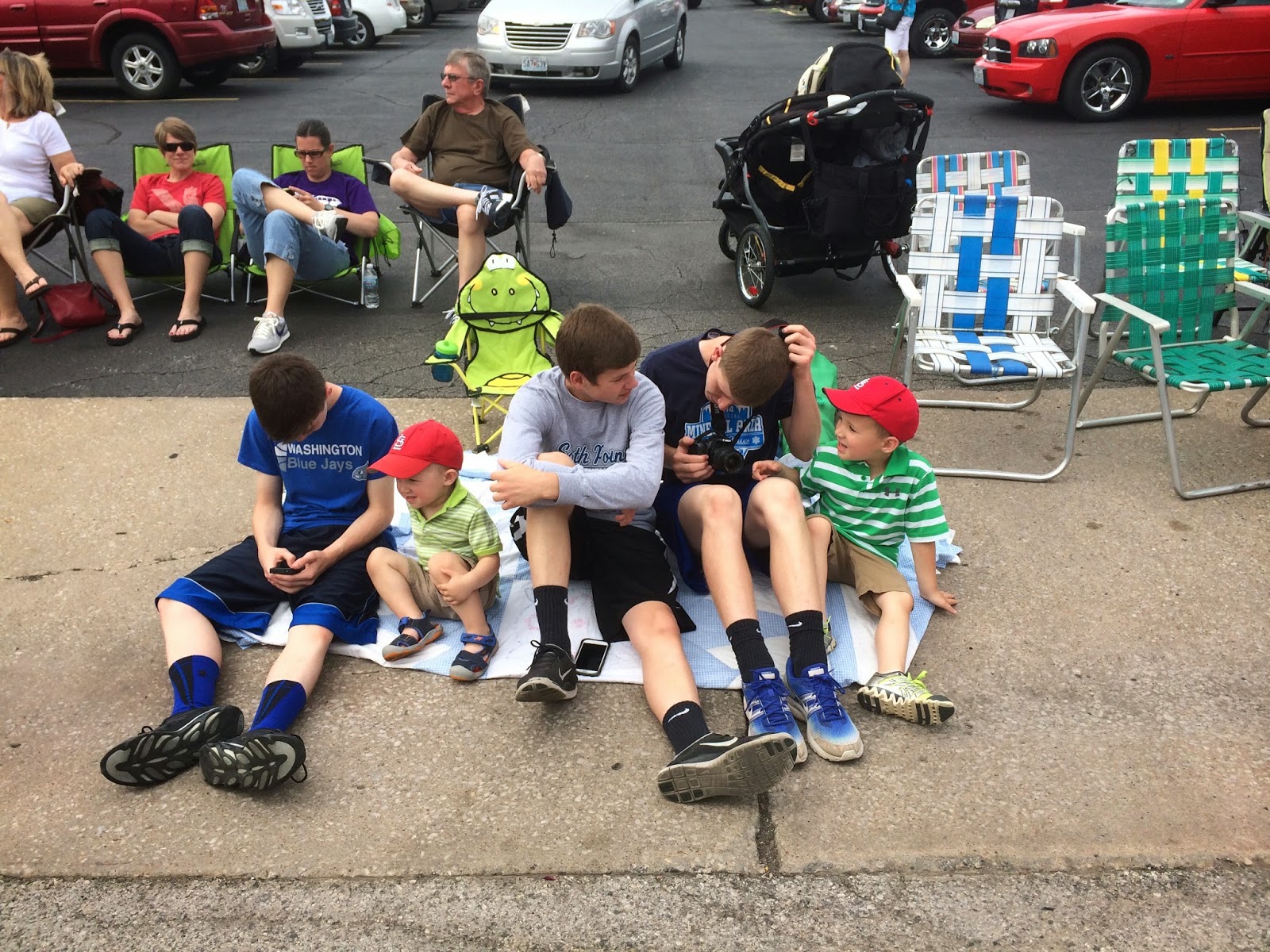 Tyler and Nathan look up to my cousin Zach so much. Zach and his friend were nice enough to let the boys sit by them before the parade started.